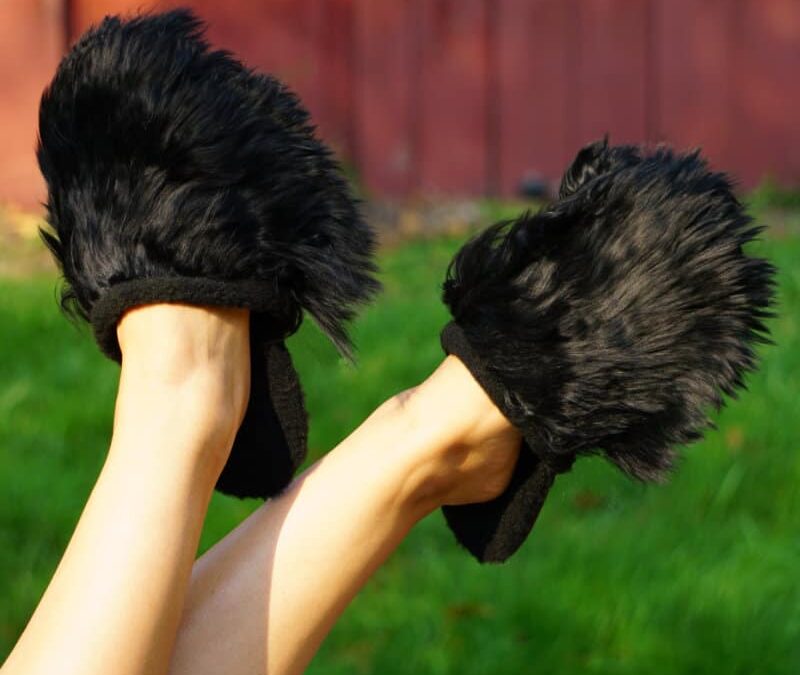 Easy slip on alpaca slippers for women are made from 100% alpaca fur inside and out. Padded soles for added comfort. Non-slip suede soles.