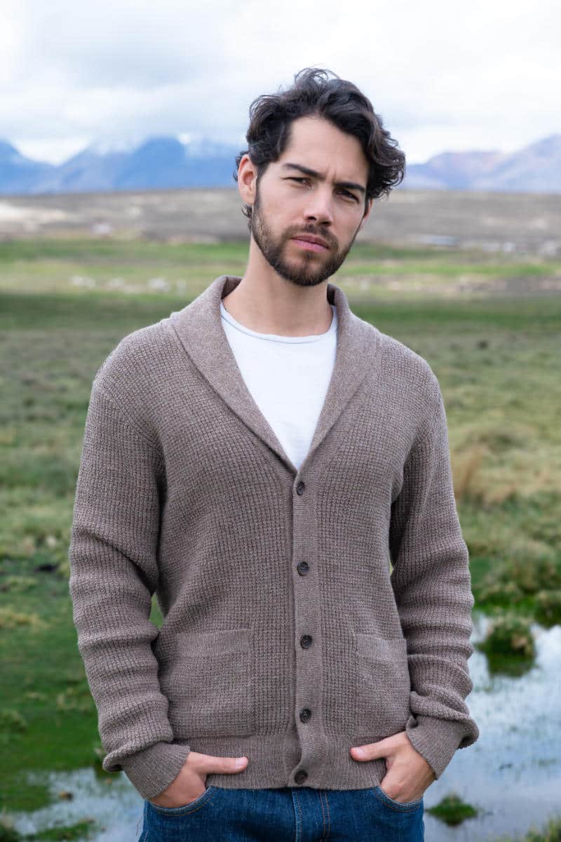 Men’s Pure Baby Alpaca Shawl Collar Cardigan