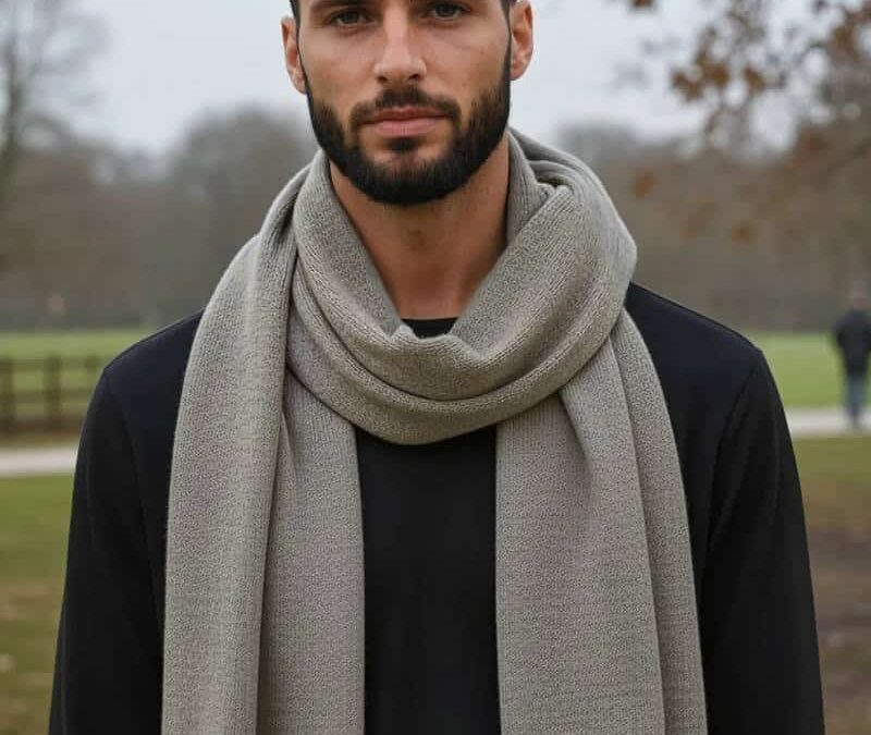 100% PURE BABY ALPACA KNIT SCARF FOR MEN IN ROSE GREY