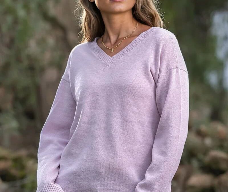 100% Pure Baby Alpaca Women's V-Neck in Orchid Ice