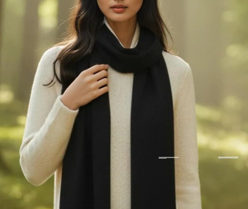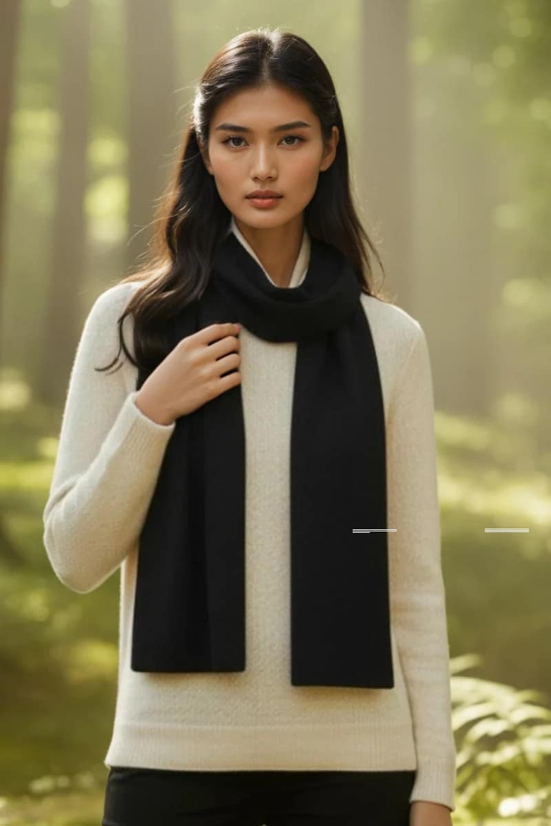 100% PURE BABY ALPACA KNIT SCARF FOR WOMEN IN BLACK