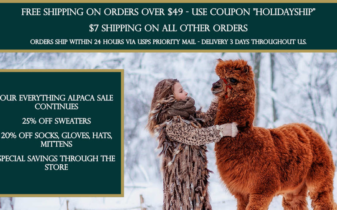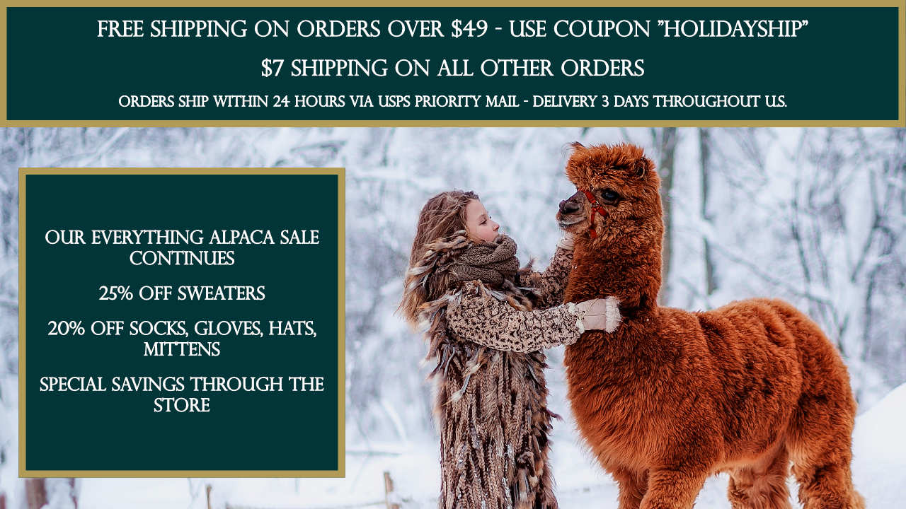 Alpaca Clothing Sale 25% Off Sweaters, 20% Off Socks, Hats, Gloves, Mittens