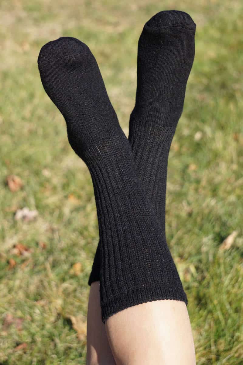 - Gentle top band: Holds socks in place without constricting wide calves or sensitive legs.