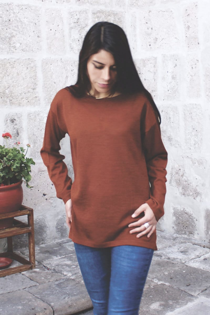 Our Royal Pullover is the go-to piece for everyday comfort and is one of our customer’s favorites. Available in 5 custom colors: Copper, Light Caribbean Sea, Light Sky Blue, Pink Orchid and Veri Peri. Pair with one of our Baby Alpaca cardigans for layering and a complete look. You will always look beautiful and be comfortable in our light as a cloud Royal Alpaca Pullover. Perfect for wear with casual jeans or leggings, or dressed up and paired with skirt, slacks or a blazer.