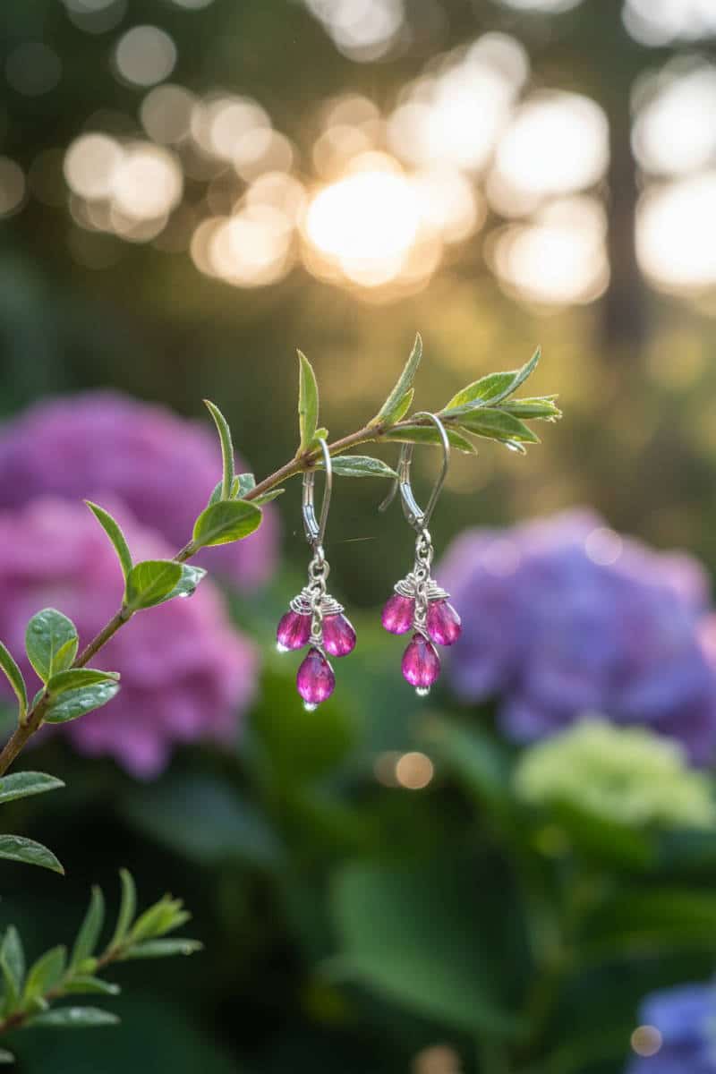 These elegant earrings feature a trio of Ruby teardrops, each one catching the light with rich, saturated color. The stones hang approximately ¾″ from sterling silver lever‑back clasps, offering graceful movement and a refined, feminine silhouette.
