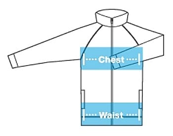 Measure under arms around the fullest part of the chest. Be sure to keep tape level across back and comfortably loose.
